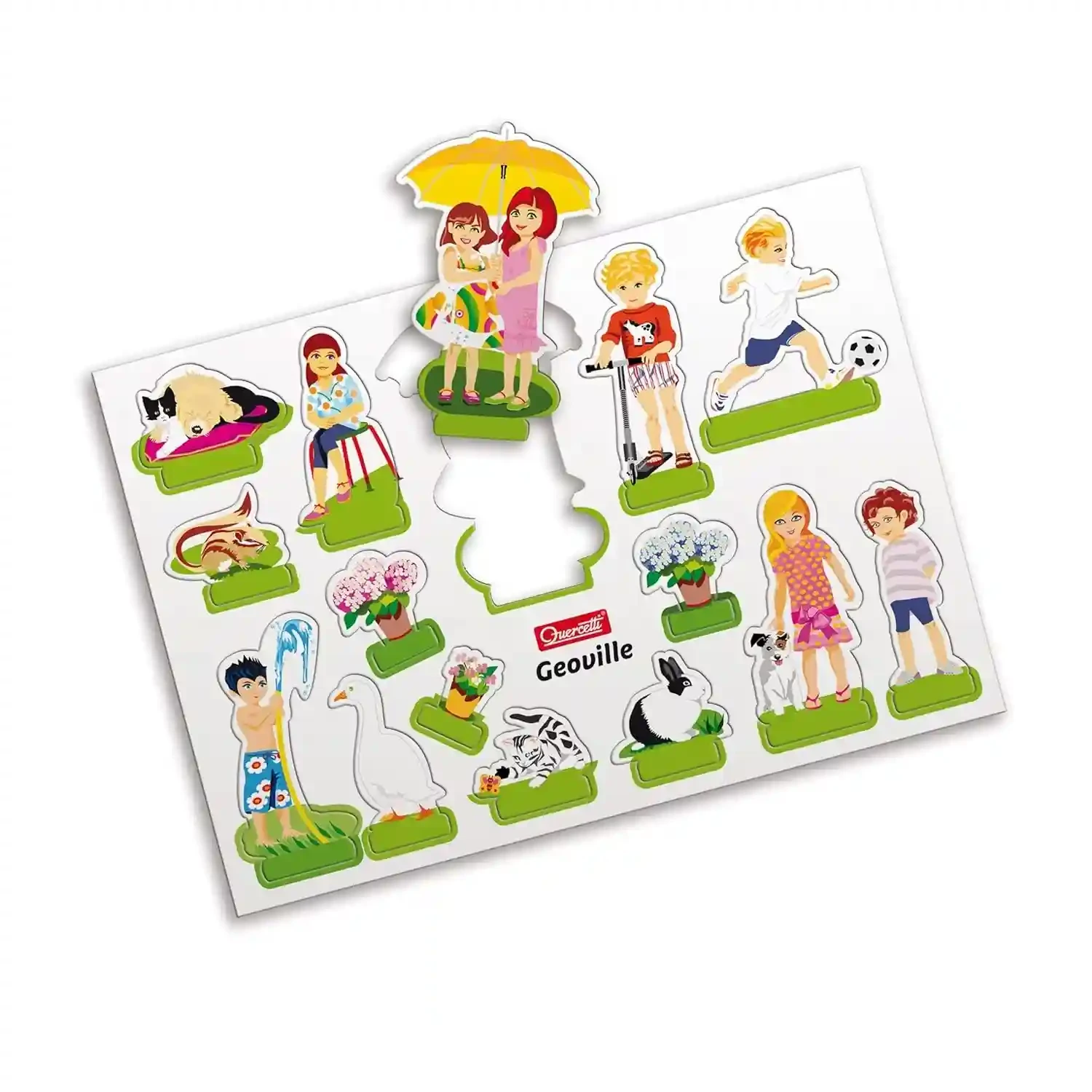 Quercetti Geo Ville 4090 is a multi-piece interlocking construction set, letting children build imaginative villages, scenery, and structures on sturdy base plates.