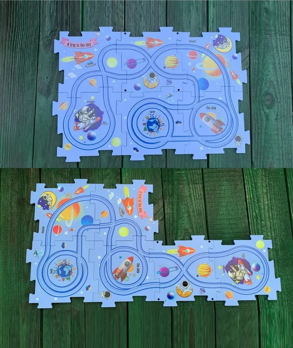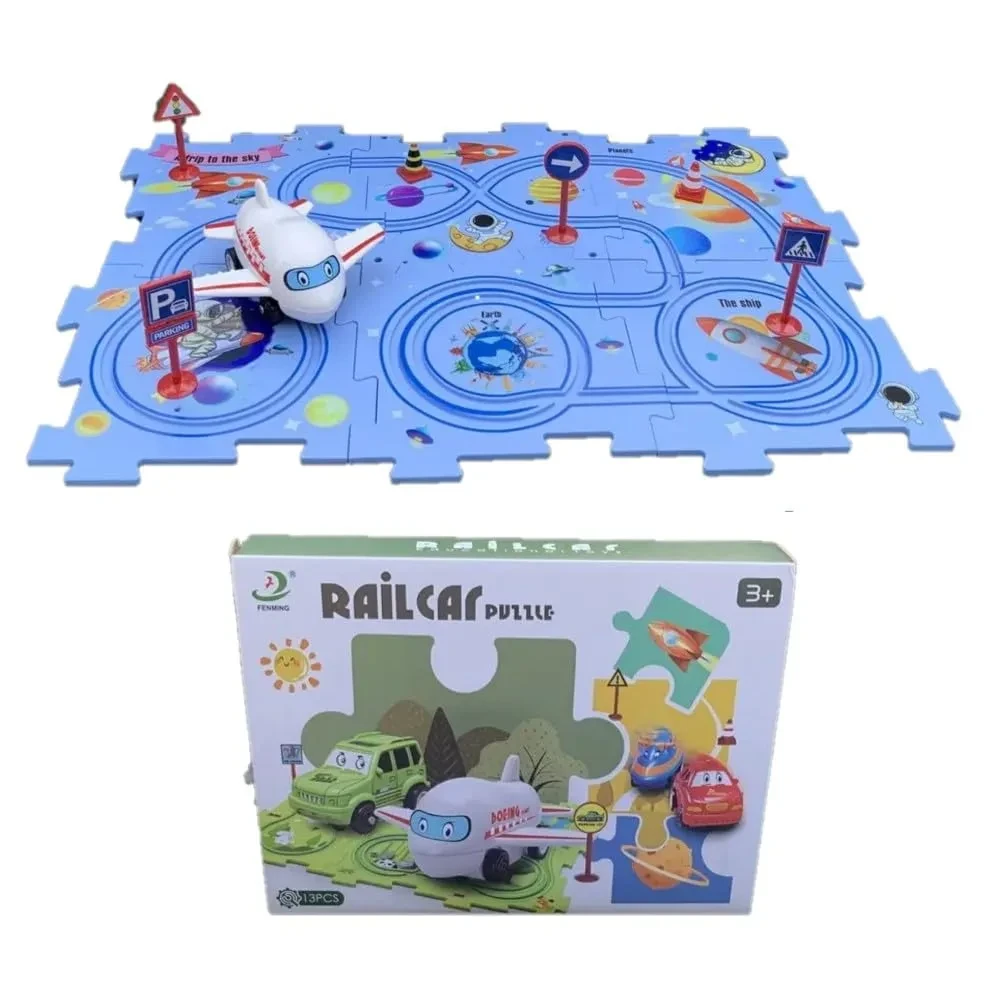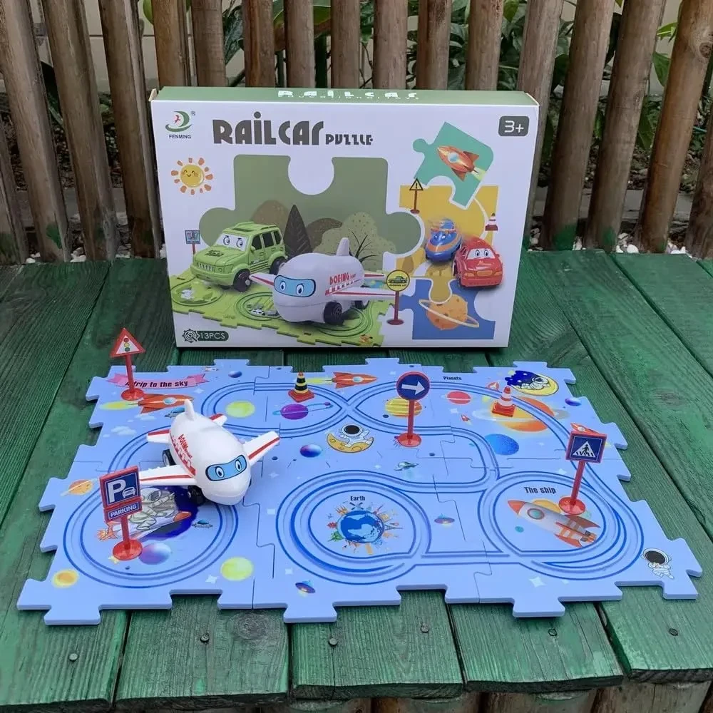 Interactive Jigsaw Track Experience: Combines puzzles and car play—pieces fit together to form versatile rail paths that the car drives along.