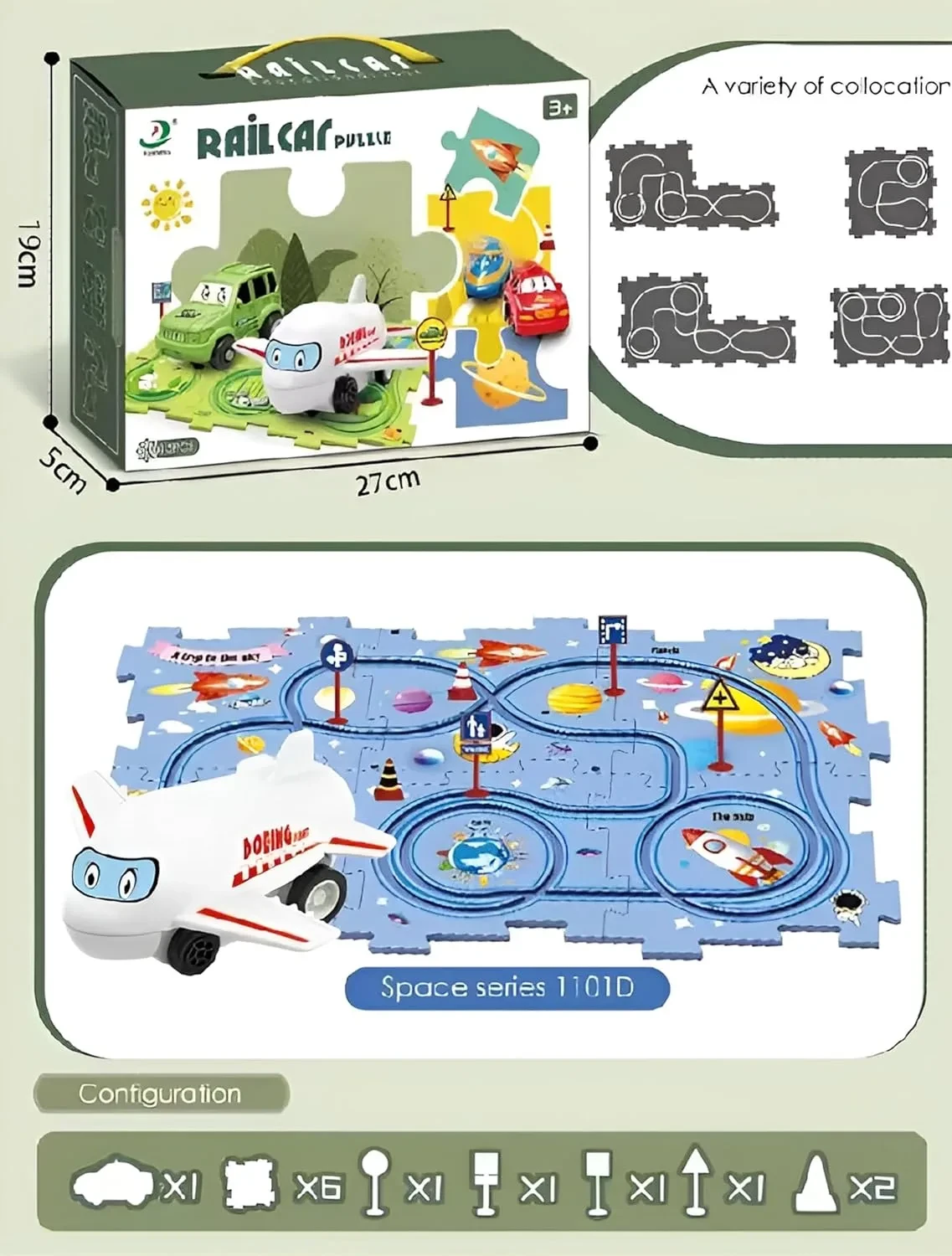 Railcar Puzzle Track Set – Electric Puzzle Track with Vehicle & Road Signs for Kids