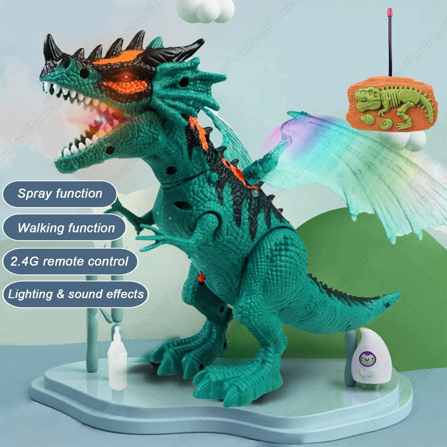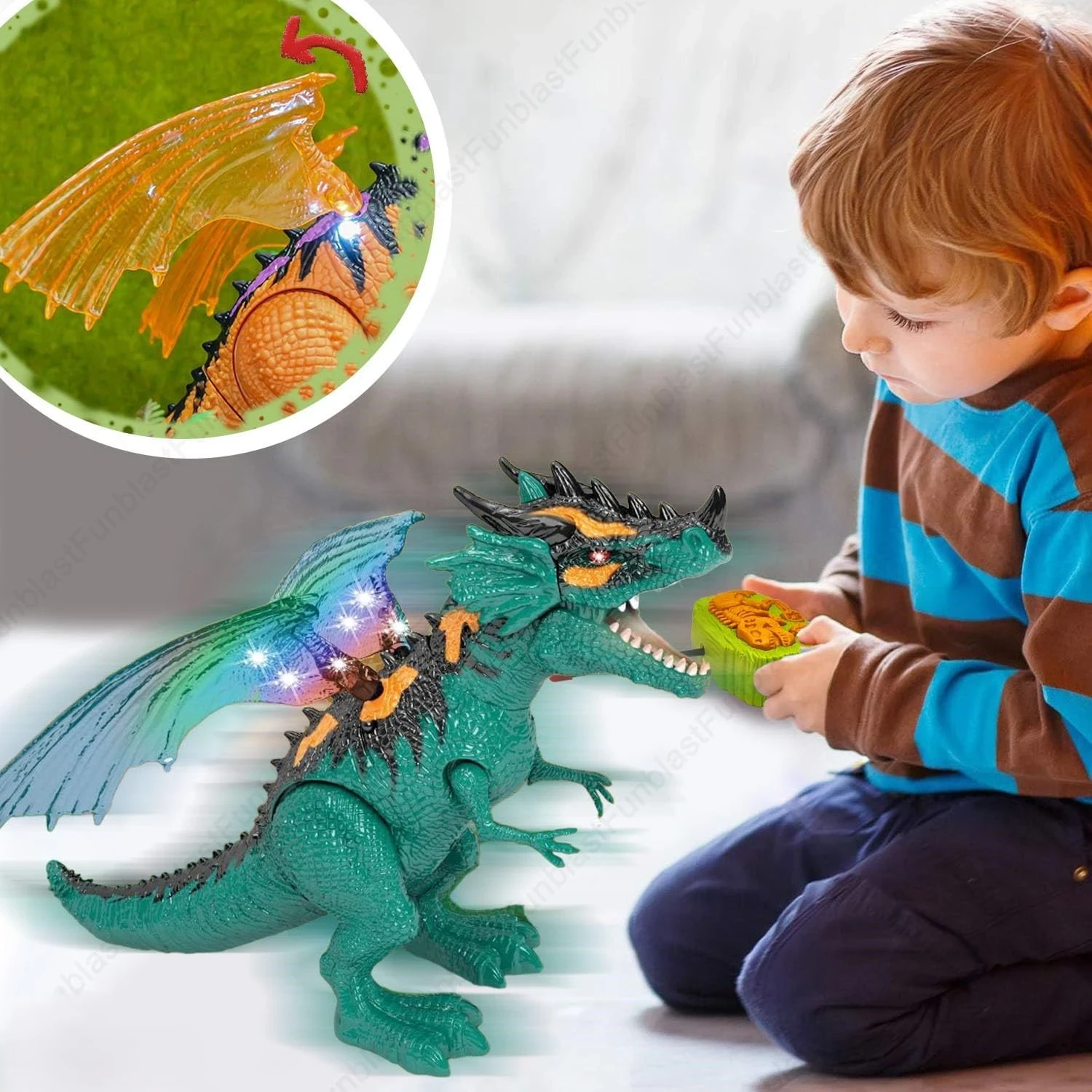EASY REMOTE CONTROL: Full-directional remote lets kids guide the dinosaur forward, backward, and turn with ease — perfect for interactive and intuitive play. (Source: Amazon listing