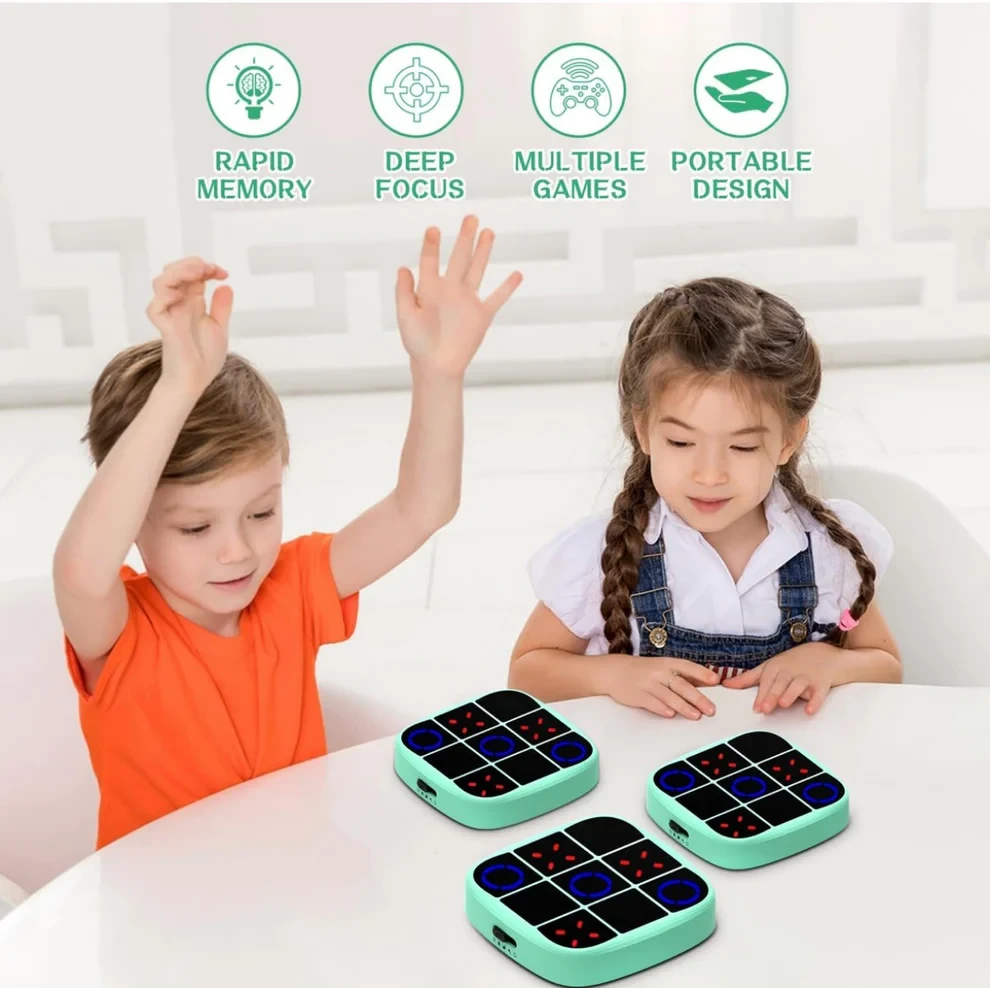 Touch Control AI Tic Tac Toe Bolt Game 4-in-1 Handheld Puzzle Game Console – Electronic Infinite Tic Tac Toes for Educational and Memory Growth