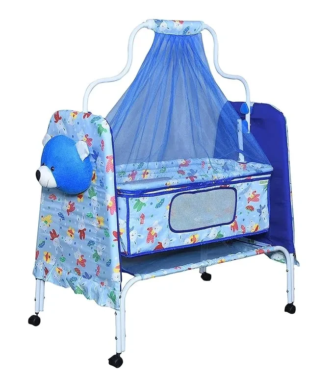 Trending Teddy Baby Cradle with Swing, Storage Basket, Mosquito Net, Four Wheels & Brake and Foldable | Comfortable Multi-Use Baby Cradle for Newborns