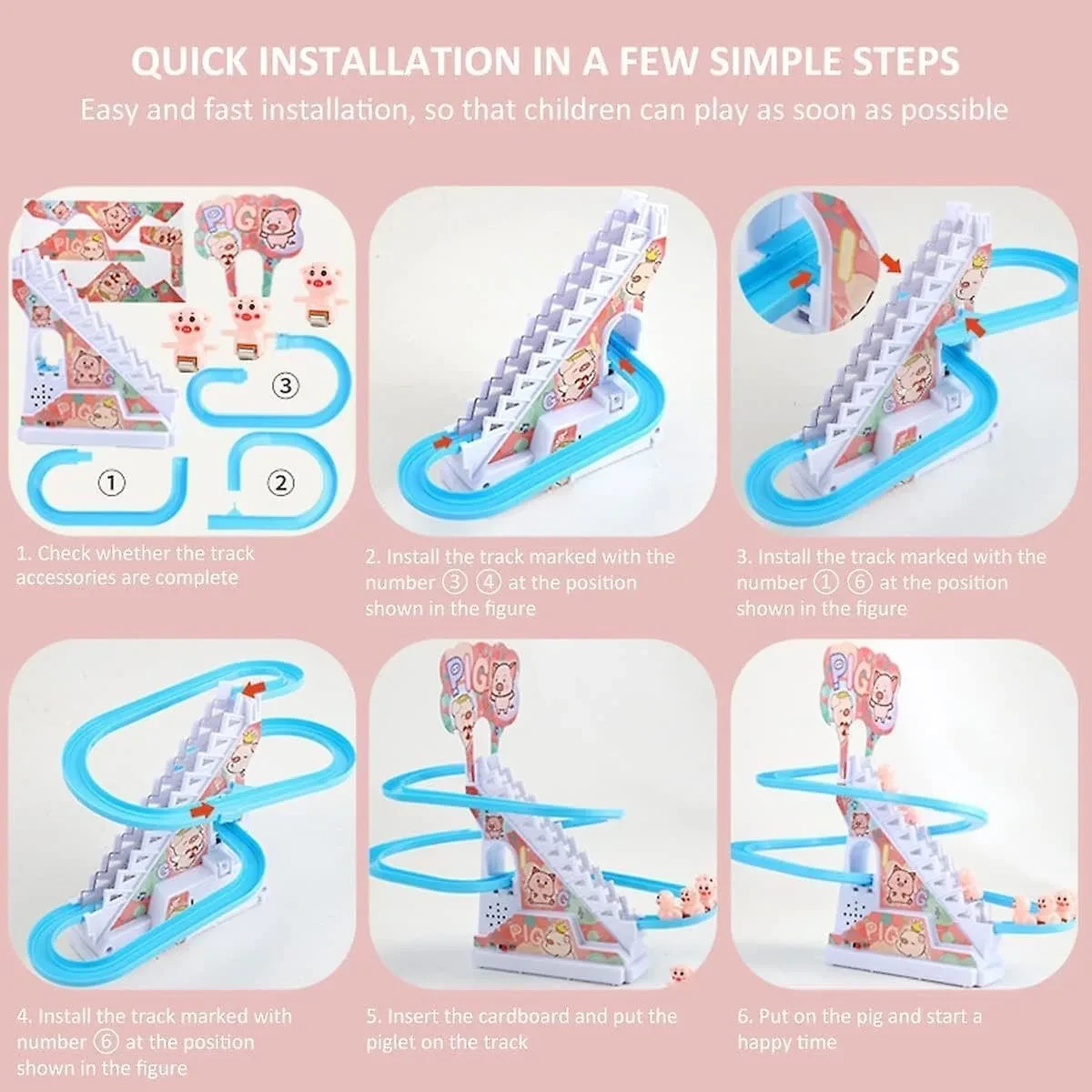 - 3 Small Pig Figures: Watch these adorable battery-operated pigs as they climb the ladder and slide down, creating a fun and interactive experience for kids.