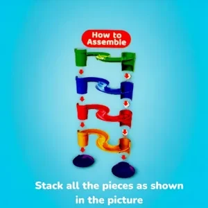 Features four vibrant spiral ramps where soft balls twist and roll down—visually stimulating